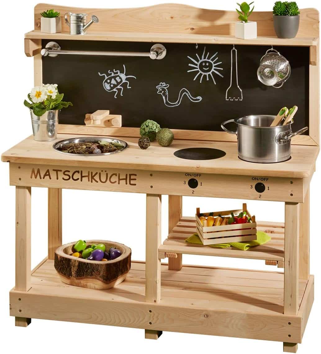 Een modderkeuken is perfect als verjaardagscadeau voor 2- en 3-jarigen. En zelfs op oudere leeftijd is er niets op tegen. Tegen die tijd zal het duidelijker zijn of het kind meer geïnteresseerd is in dit soort buitenspelen.